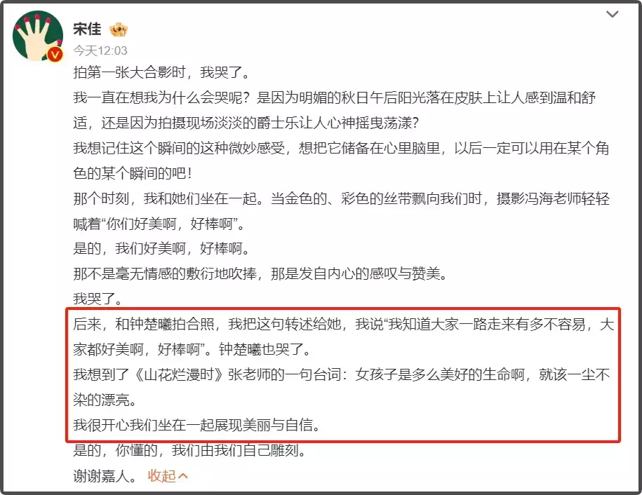 最后借用宋佳的台词“女孩子是多么美好的生命啊,就该一尘不染的漂亮。”也希望内娱明星少点儿勾心斗角,一心只为提高自己回报粉丝和观众吧。