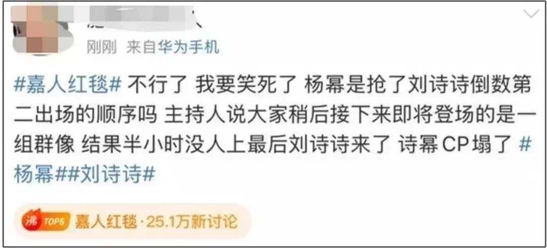 不少粉丝去留言,强调刘诗诗是救场,内涵杨幂为了咖位压出场顺序,硬是逼得主办方找人救场。