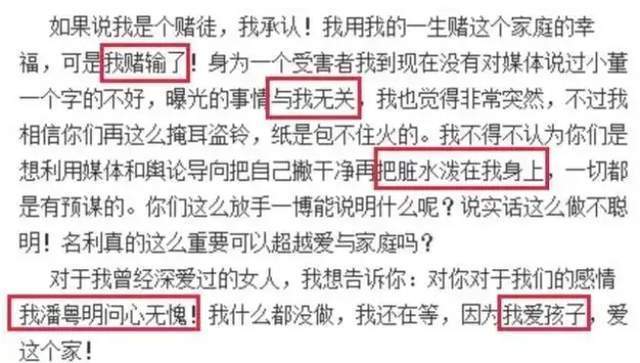 第一阶段,两个人刚宣布离婚,就有舆论导向指责男方,然后就从各方渠道里面有关于潘粤明赌博、家暴、出轨各种各样的消息传出。伴随着模糊不清,一些潘粤明在澳门赌场牌桌上的照片,坐实了传言。